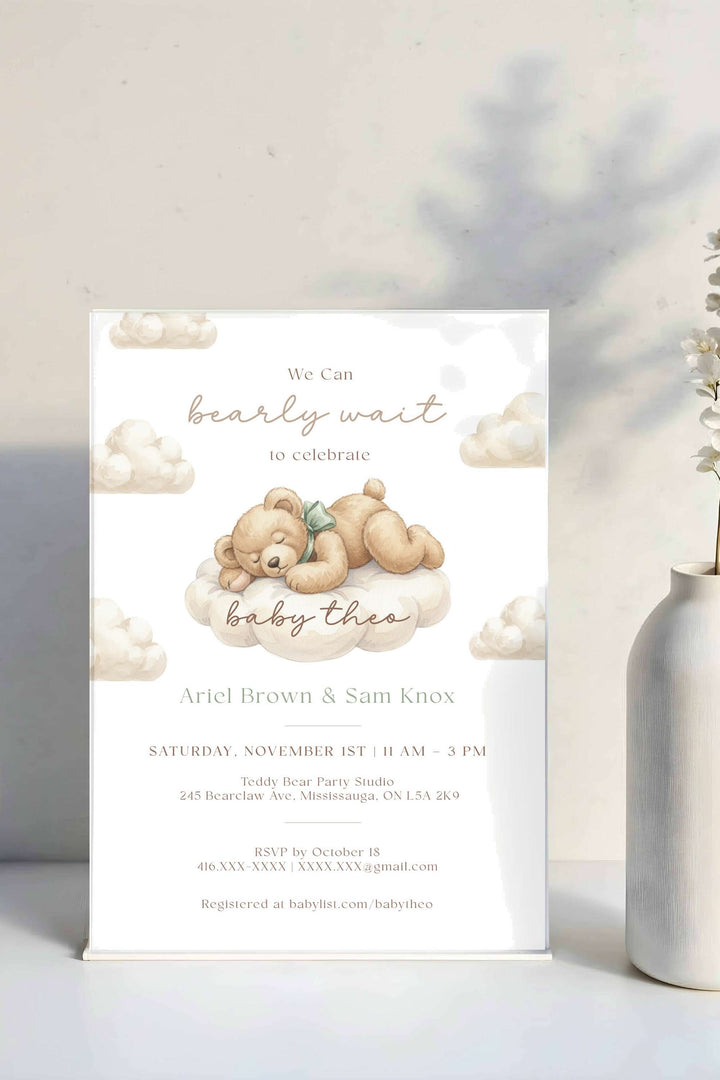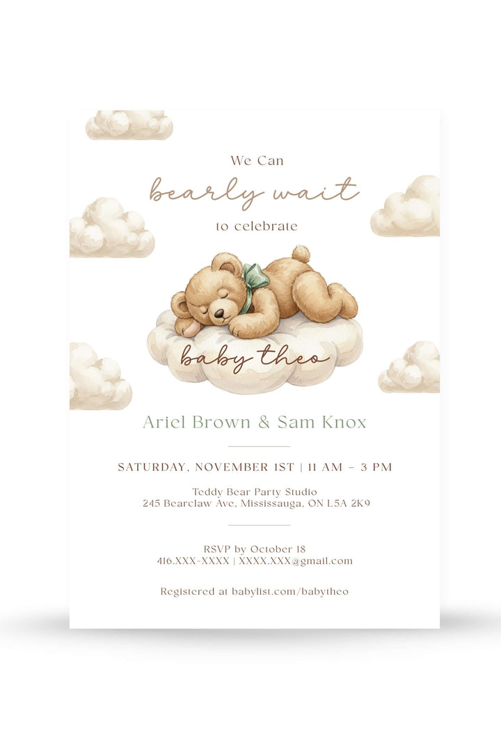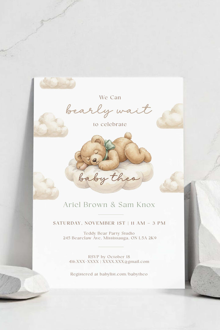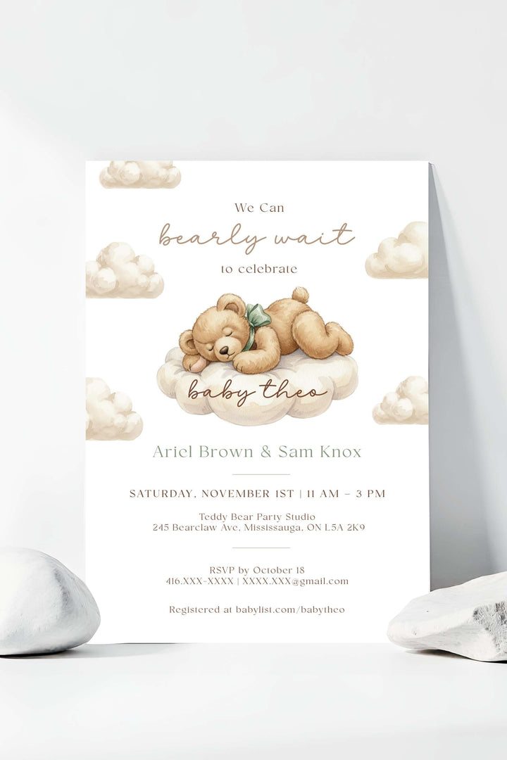 Bearly Wait Baby Shower Invitation – Gender Neutral Cloud Bear Template