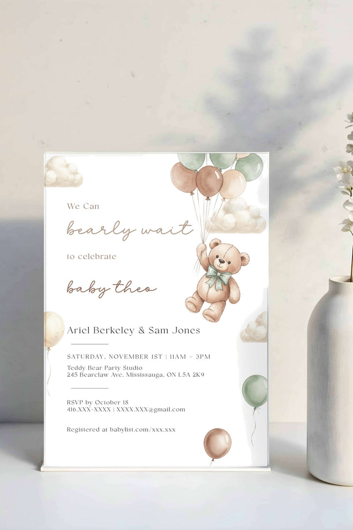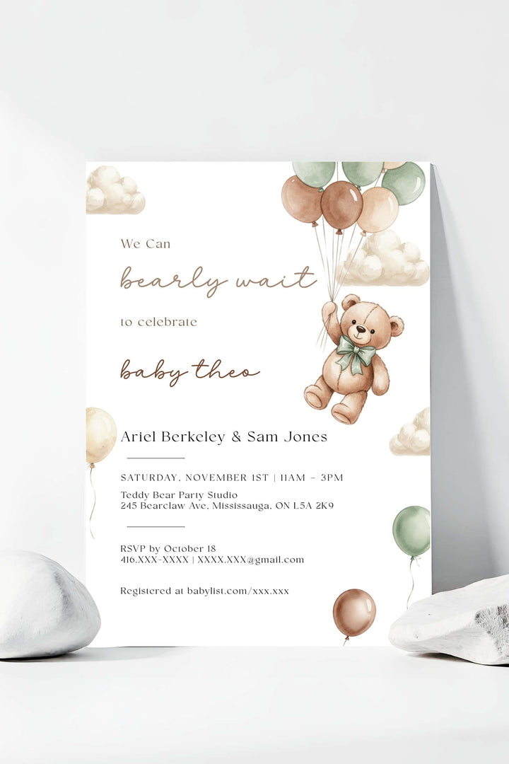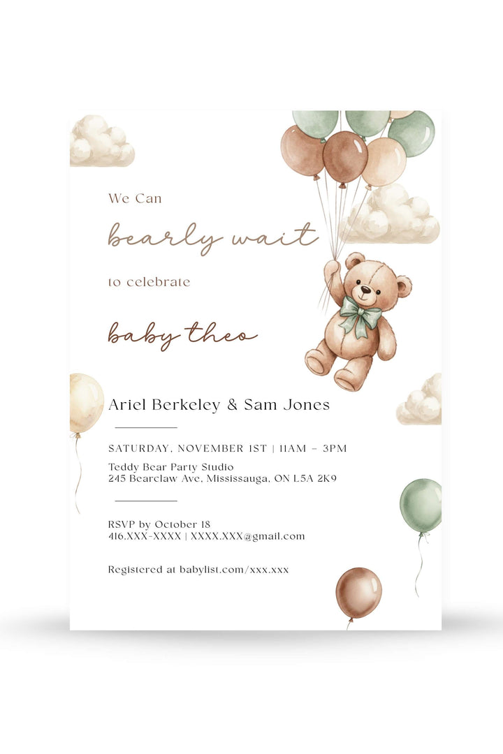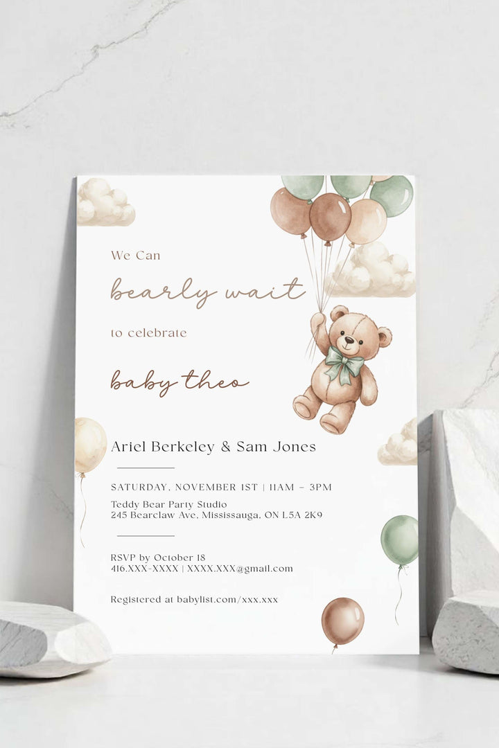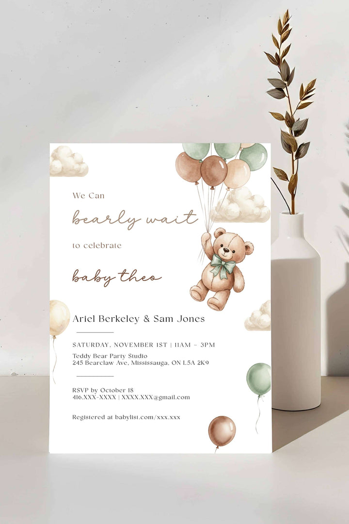 Celebrate with charm using the Bearly Wait Baby Shower Invitation – Teddy Bear with Balloons. Personalize today on Templett and create a keepsake everyone will remember.